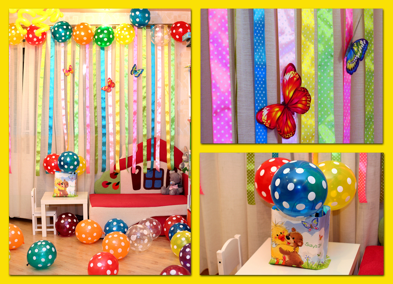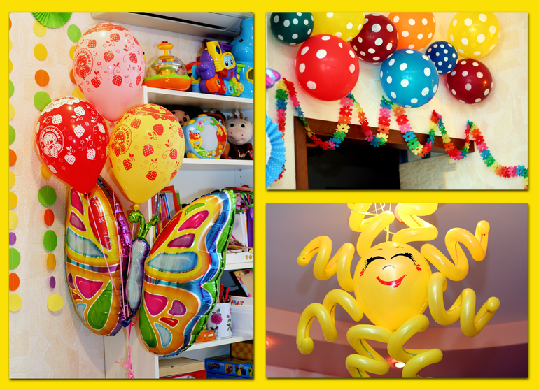 Ребенок был отправлен в родительскую кровать, а мы с мужем полночи украшали зал. И знаете, что я скажу? Клеевой пистолет лучшее изобретение человечества, после памперсов, естественно! Ни скотч, ни булавки, ни момент не творят таких чудес как горячий клей. Только не спрашивайте, как буду отдирать. Об этом я подумаю ближе к новому году, когда потребуется заменить шарики снежинками.