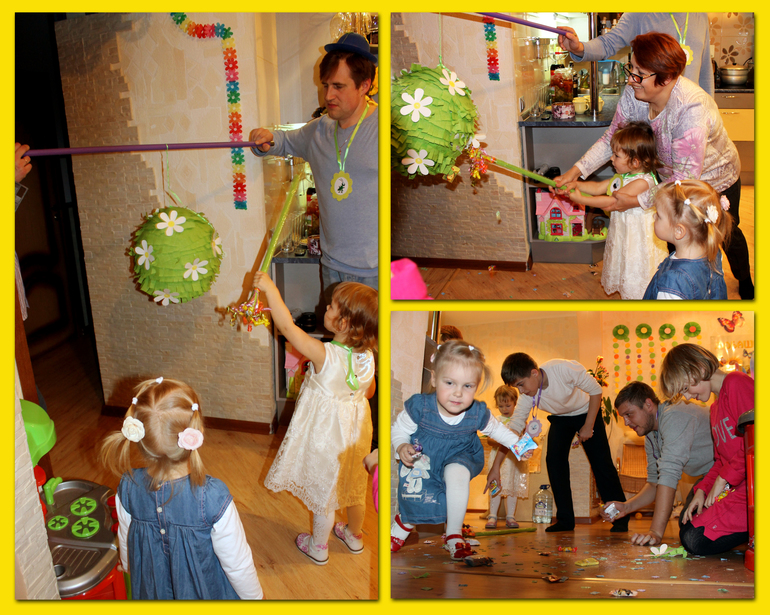 Логическим завершением сказки стало расфигачивание пиньяты. Все с удовольствием принялись лупасить по воображаемой голове паука, а я с замиранием сердца смотрела и в мозгах проносились бессонные ночи кропотливой работы над созданием этого несчастного шара. )))))))