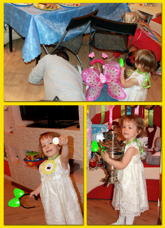 Сценарий по мотивам Мухи-Цокатухи был выбран не случайно. С тех пор, как в 2,5 года дочка без запинки стала читать эту сказку наизусть, мне жутко захотелось ее инсценировать.