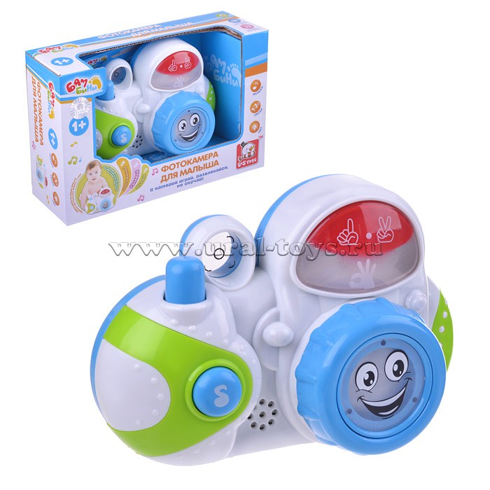 Музыкальный фотоаппарат. Вообще то он рассчитан для детей от 6 мес., но у нас не просто прижился, а стал самым востребованным из подарков. Чуть ли не спим с ним. Постоянно все снимаем: Папа кушает! (щелк)... Мама купает Анечку (щелк)...