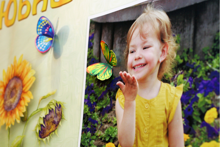 Благодаря наклеенным бабочкам, картинка как будто ожила.