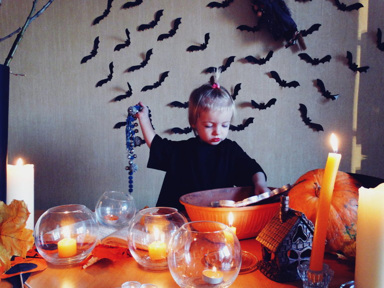 РазноеВ этом году я решила устроить праздник исключительно для ребёнка!Сама я не отмечаю хэллоуин и не вижу в этом празднике смысла!Посидев в интернете,насобирав материал я принялась за декор....на все у меня ушла неделя!Конечно можно было сделать все за дня два,но Соня ни в какую не помогала мне,а лишь мешала,рвала летучих мышей и т.д!Поэтому "работала" я в обед,когда моя ведьмочка отдыхала!Всё же эмоции и улыбка ребёнка стоят всех потраченных сил,они заставляют что-то без конца придумывать и воплощать в жизнь!Даже муж поддержал все идеи и не смотрел на меня,как на больную...когда я в 11 вечера,в темноте собирала сухие ветки!