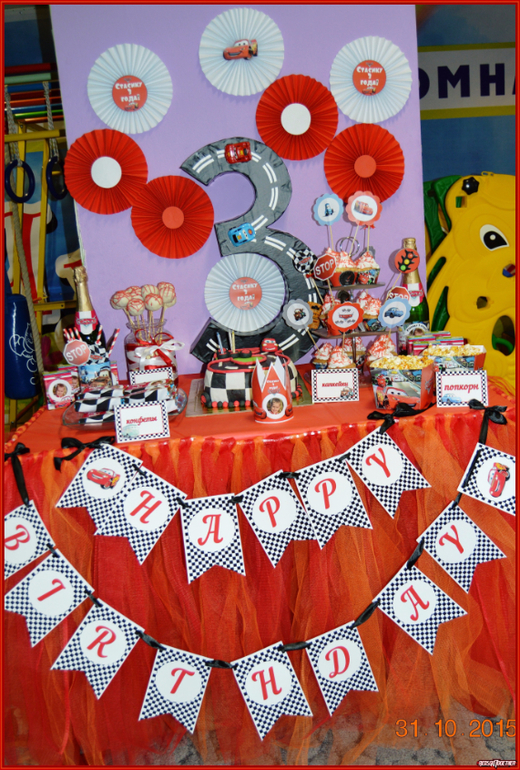 День рождения ДетскийМного писать не буду. Над темой долго не думала, т.к. сынуля обожает Тачки. В общем получилось как то так: