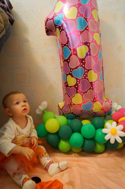 Затем обеденный сон. В это время привезли шарики, украсила квартиру. Пока доча спала, накрыли на стол.