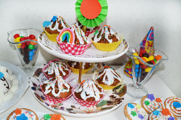 Печенье покупала готовое,украсила айсингом,радужной посыпкой и цветочками мастичными.Тортик очень вкусный-Панчо,тоже сама украшала))еще была красивая свечка 5,радужные конфетки)).Свечку ,как всегда,задували все дети по очереди,это уже почти традиция.