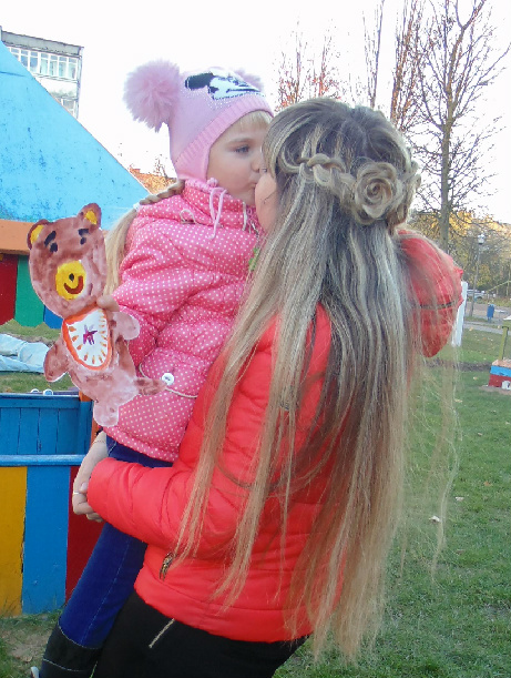Милаша как всегда прекрасна)) А воспитательница такая молоденькая у вас!!! Нам всё пенсионные попадаются. Ты сама себе причёски делаешь или на работе плетёте друг другу?