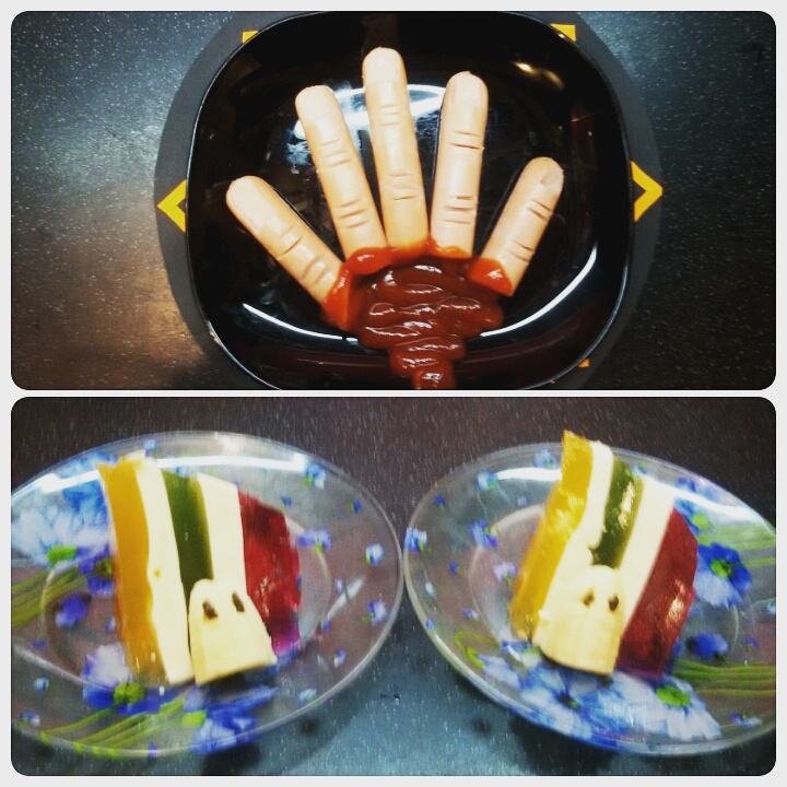 Угощения были простые, что попросил Арсюша - сосиски и желейный тортик.