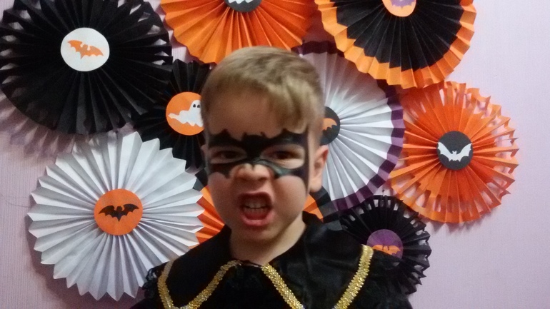 Как страашно-красиво! Арсюша в образе Дракулы,такой крутой,в такой рубахе!Тыквы и привидения классные! Алена молодчинка,праздник супер!!!Не болейте!