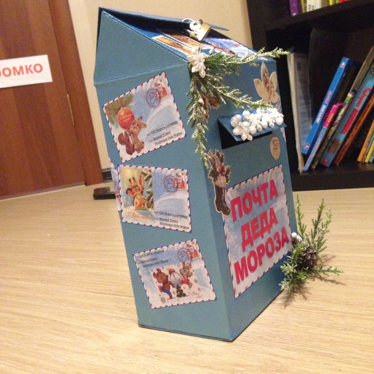 Я решила совсем заморочиться и сама сделат почтовый ящик, отнесла его в садик, чтобы и другие дети были уверены, что отправили письмо кому надо.