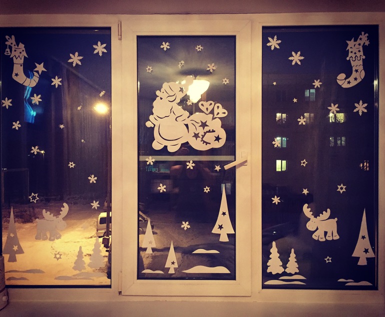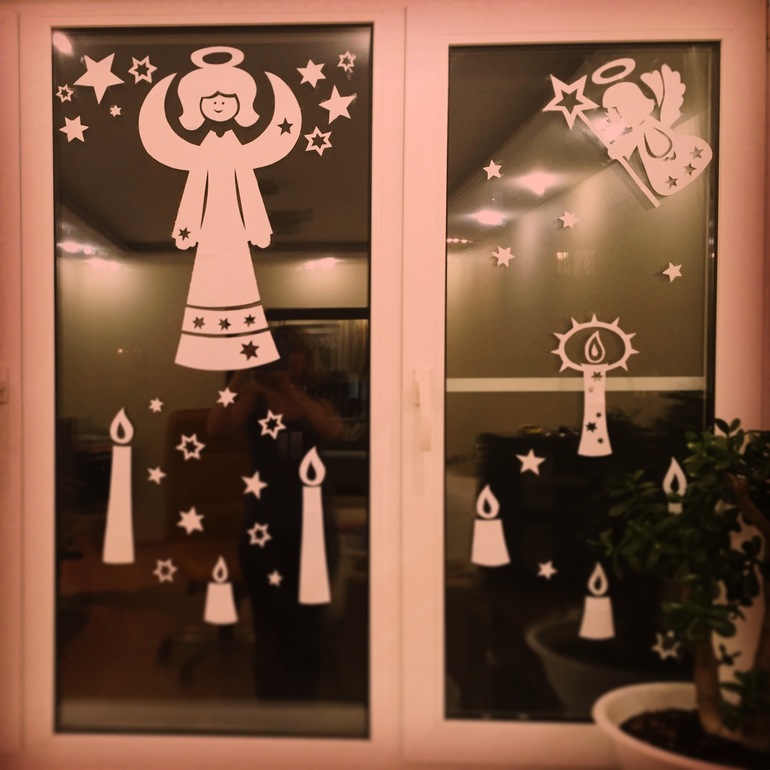 У соседей на первом этаже кстати наклейки уже на окнах, прохожим видно, смотрится весьма романтично, я поэтому тоже решила пораньше свои окна украсить.