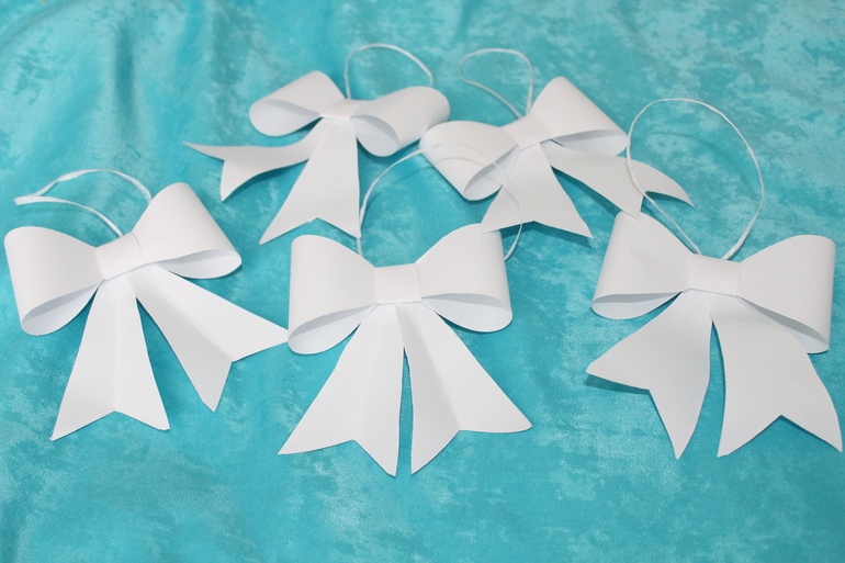 В этом году очень хотелось на ёлку что-нибудь девчачье повесить (меня поймут мамы сыновей), и конечно же это- бантики.Думала сшить, либо купить готовые, а потом в интернете увидела бантики сделанные из бумаги, такие они воздушные, красивые)И вот, что получилось: