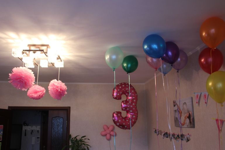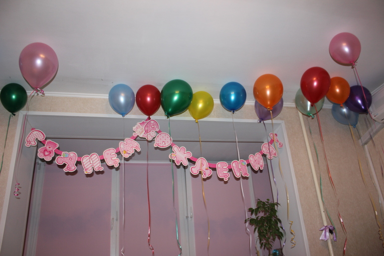 Еще был самодельный плакат из серии "что я умею" (в кадр не попал) и много-много шариков: