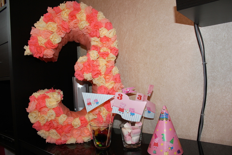 И наша с мужем гордость - цифра "3"!! Долго я вынашивала эту идею, все рассматривала здесь на babyblog как девочки делают их самостоятельно. Оччченьь нравились. Сначала задумала сделать хотя бы плоскую, но вооот, та-дааам - большое желание и коробка от вовремя купленной люстры творят чудеса)) Любуюсь ей постоянно и горжусь нами))