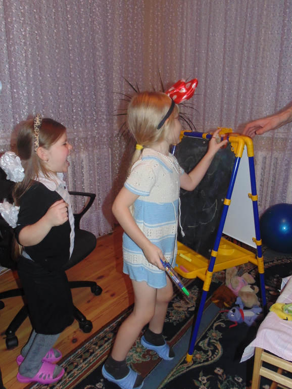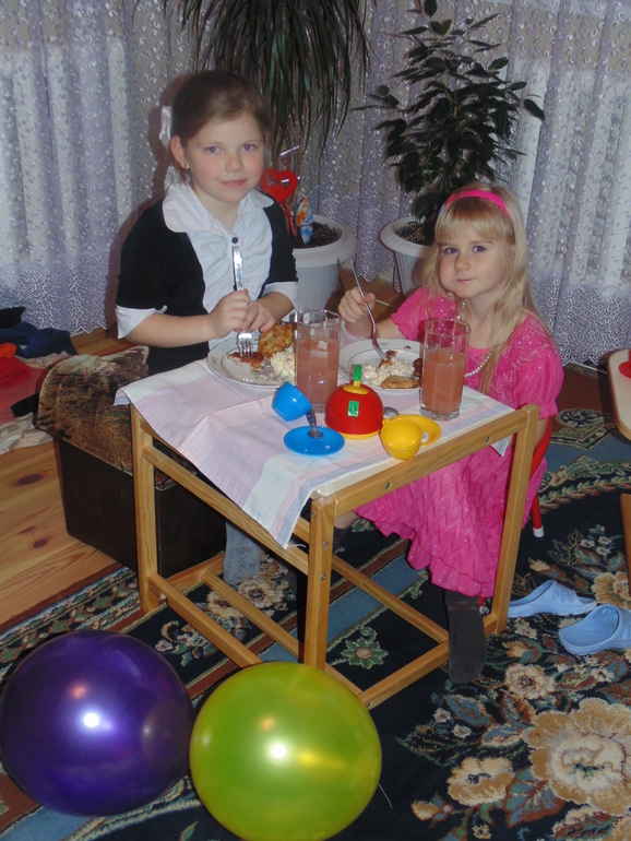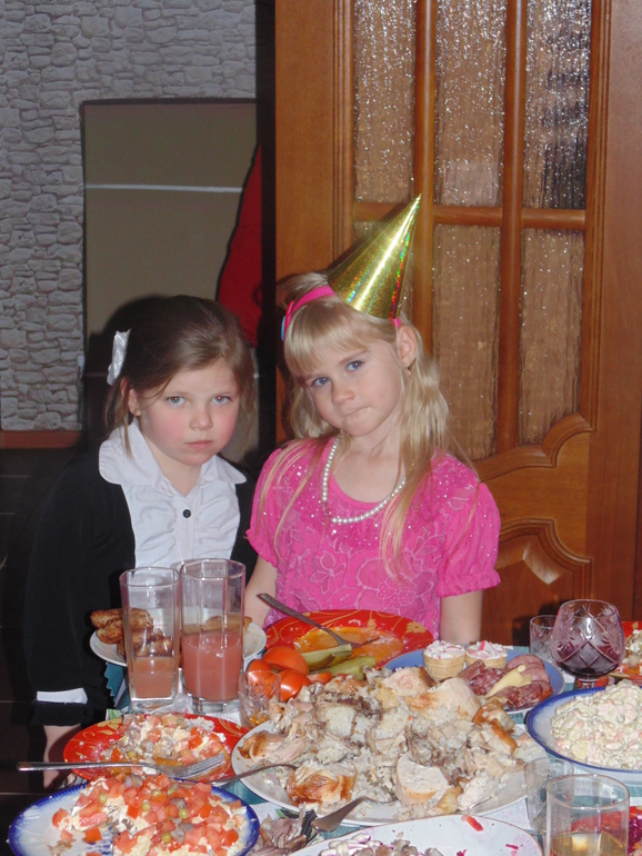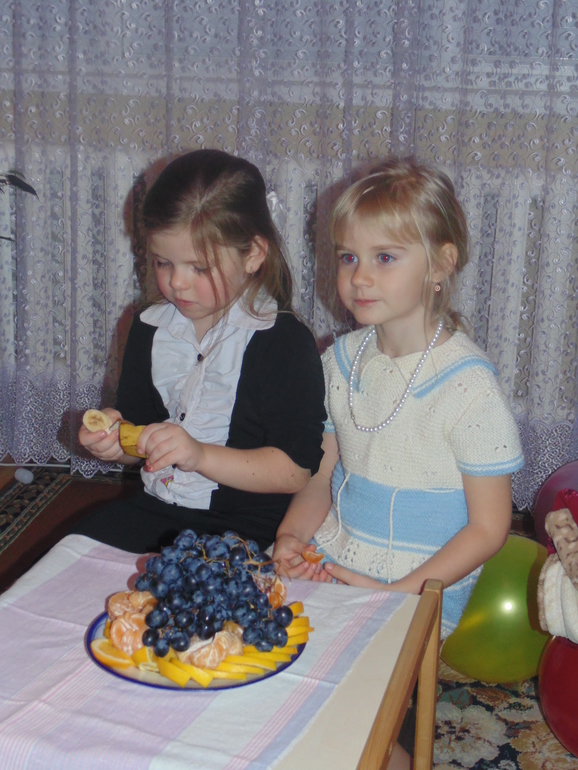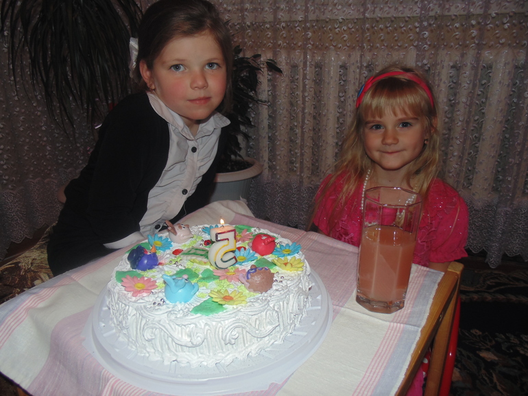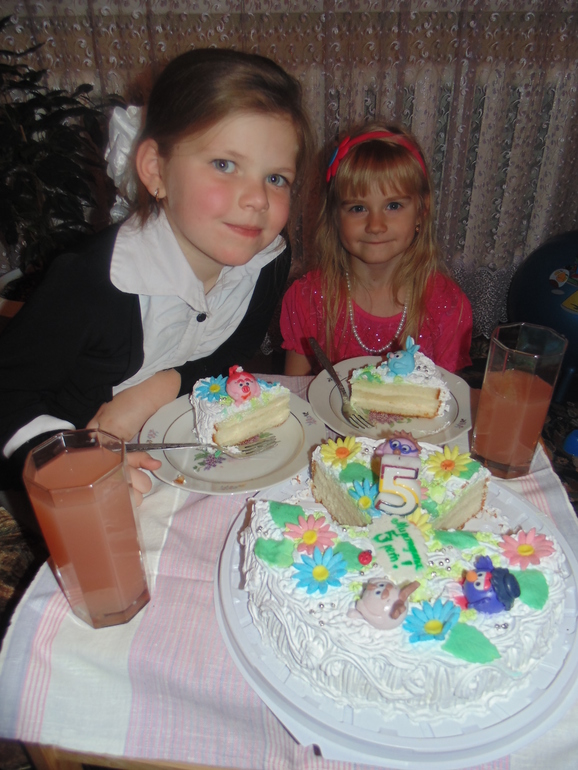 Праздник наш прошёл очень хорошо , весело и задорно , хоть и на подготовку совсем небыло времени !!! ) В гости приходили бабушки и дедушки , Миланкина пробабушка ( 86 лет ) , Вадим ( брат мужа ) и Ангелинка ( двоюродная сестричка Милашки ) ... Девчонки набесились от души ... и в этом им помогала наша Стеша ( наш щеночек ))) ) ... Засиделись почти до 23 ч. ( а на утро еле в сад и на работу проснулись ... ) Но было крууууто ))) , даже пофоткаться небыло времени ... но несколько кадров , с нашего праздника всё же есть , подкатом ) :