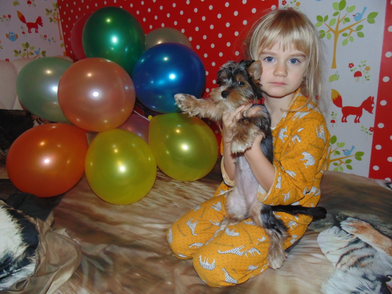 Утро Дня Рождения !!! Милашка со своим главным долгожданным подарочком , от нас с мужем ))) ( наша Стеша ) :