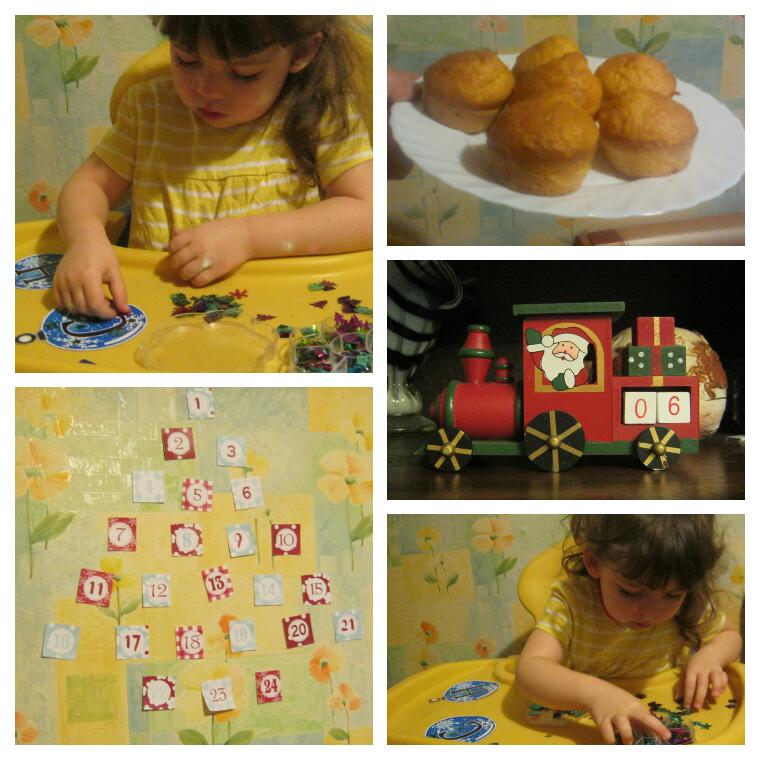Вот наши задания и что успели за первую неделю. Для дочки,1. украсить гирлянду "с новым годом" кто то тут на бб выложил для скачивания новогодние буквы- гирлянду а у меня из запасы ерунды из фикспрайса были разноцветные блестки их и клеили на прозрачный клей, и мелкая моторика развивается и букву учим и творчество-развлечение. Так же эти разноцветные блестки пошли на украшение нарисованных ёлок в другой день когда не фотографировала. 2. Репетиция новогодних пряников.- репетиция, потому что не пряничное а творожные тесто, но в форме ёлок, а репетиция, потому что тренировалась расписать глазурью... Не очень удачно, сфотографирую в следующую репетицию... Настя как всегда с удовольствием вырезает, выкладывает на противень и мажет яйцом печеньки. 3. Сходить в парк за шишками - нашли две- гдеб их найти? Внепланово покормили белок, семечками, орехами делиться детей отказалась, сама съела. 4.моё задание: помыть окна- успешно! Даже на балконе! 5. Проверить рецепт морковных капкейков и украсить празднично кремом- кексы хороши, а вот украсить не смогла..6. Настенный адвент- частично, дорабатываю и будет продлён до 31го и добавлен 1-7.01(рождественский) у меня и на праздники планы:))