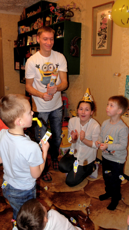 Под занавес папа хлопнул хлопушку с миньонами,половину Слава Богу дети унесли с собой))))
