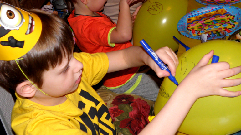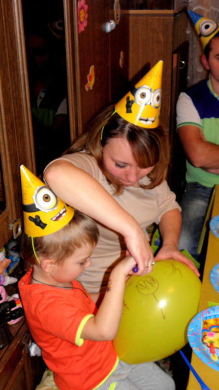 Пока детей затащили,провела первый конкурс "НАРИСУЙ МИНЬОНА",раздала всем по шарику и фломастеры,победили конечно же все)