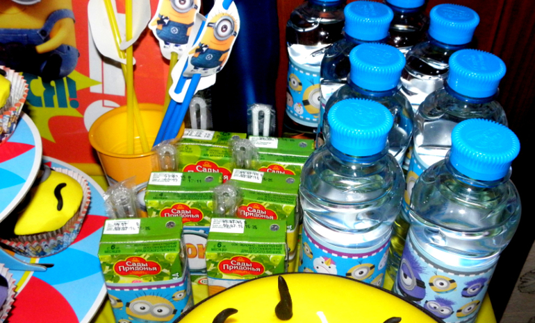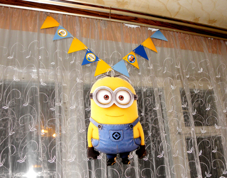 За месяц до ДР сын выбрал тему Миньонов и я с радостью согласилась,так как казалось,что уж в этой теме не будет проблем найти и украшения и развлечения) Но я как обычно ошиблась или закон подлости снова сработал,но куда бы я не сунулась,кроме шариков мне ничего предложить не смогли) На Ебей или с Китая не было времени заказывать,все таки боялась,что не успеет придти,пришлось собирать все по крохам в разных местах) За месяц смогла спокойно купить многое в теме миньонов и украшения найти и конкурсы подобрать,так что к дате Х я была во всеоружии) А что из этого вышло,судить вам)