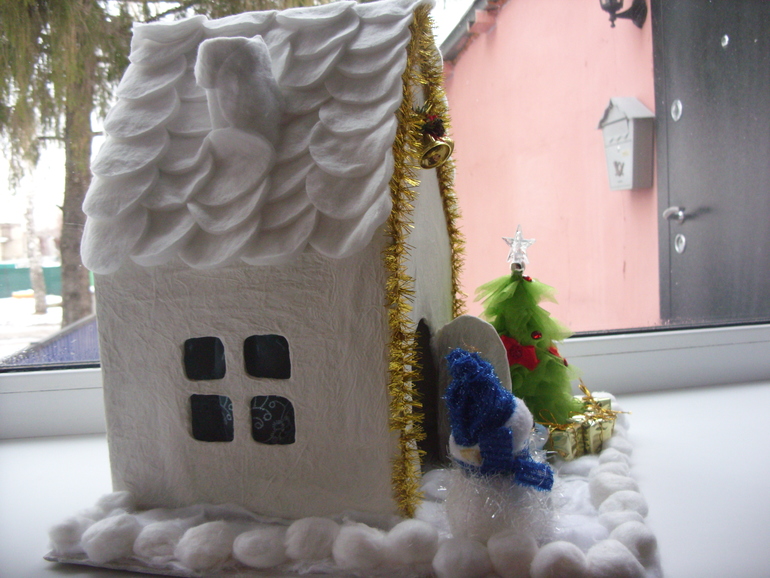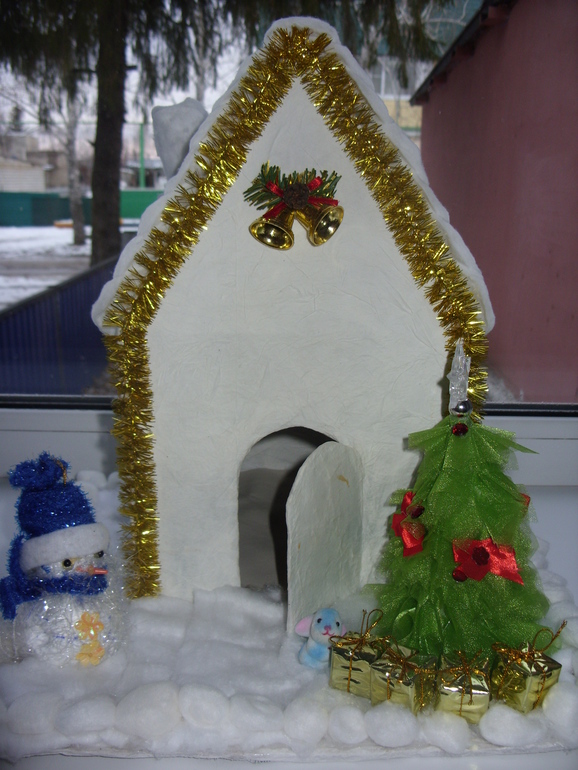 Мы в прошлом году в садик делали снеговика из ниток прикольный получился. Т.е. нитки наматываете на возд. шарик потом брызгаете лаком или мажете клеем и лопайте шарик. Надели ему шапочку сделали нос-морковку.
