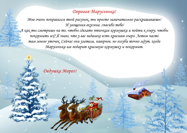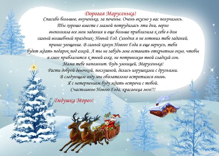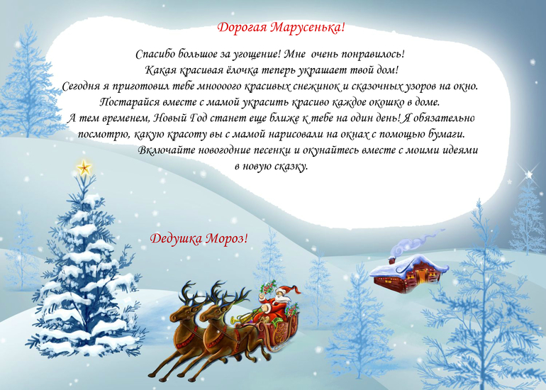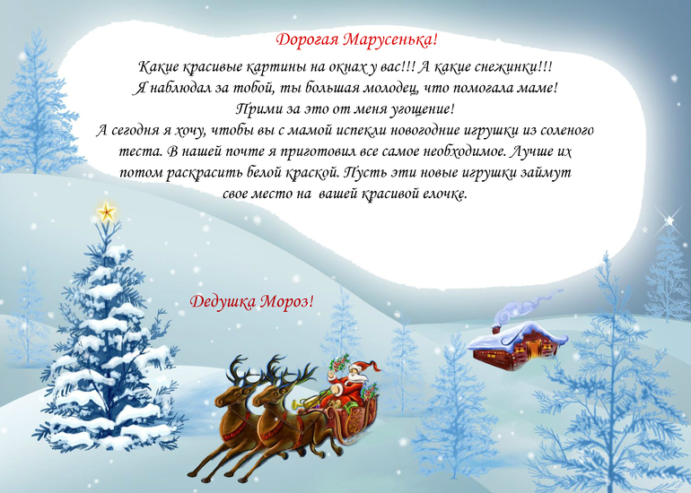 Ну вот, сказка началась))) После каждого задания Мару обязательно будет дедушке Морозу класть угощение в коробочку нашу волшебную)). Я еще буду дописывать письма. Т.к. Дед Мороз должен нам принести еще несколько билетов на мероприятия, болеро на утренник под платье, может еще чего принесет до основных глубоко ожидаемых подарков)))