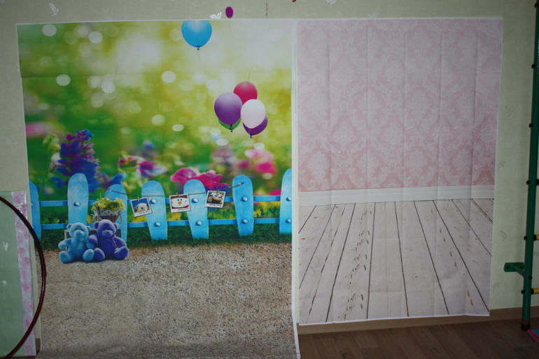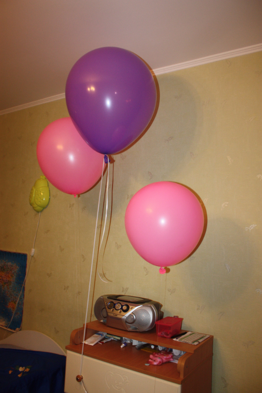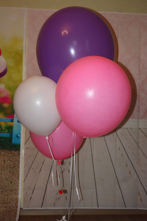 Белый шарик - обычный шарик, очень хорошо надутый) Розовые надуты плохо, они были первыми, я побоялась, что лопнут))))) Еще был куплен фон для фотографирования детей: