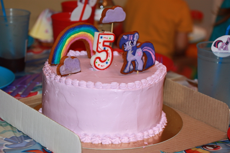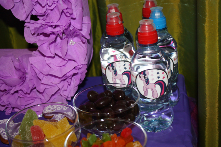 Сначала был легкий перекус (скатерть, тарелочки и салфетки - все с Пони, куплено в Ашане, на трубочки сама распечатала и приклеила этикеточки с изображением Искорки, детям это понравилось - обсуждали долго), затем им был открыт доступ к сладкому столу (делала цифру "5", с ней была позже возникла спонтанная фотосессия, были пряники, морские камешки, мармелад, миндаль в шоколаде, водичка с самодельными этикетками "Волшебная водичка" и изображение пони). В заключении вечера был торт (зажигали свечки для каждого друга дочки - конечно, всем же хотелось задуть и загадать желание) и подарки от именинницы на память - рюкзачки (такие, как правило. подходят для сменной обуви), вкусные ароматные прянички на палочке, надували шарики с изображением принцессы , девочкам еще по колечку ( куплено в киоске "Печать" за 25 руб).