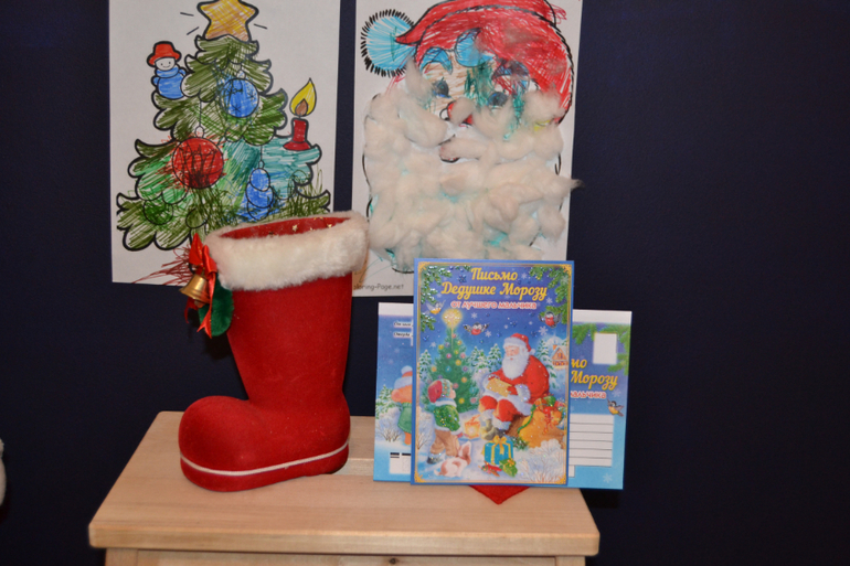 Писали письмо Деду морозу и посадили новогоднюю травку, раскрасили елку и ДМ наклеили бороду.
