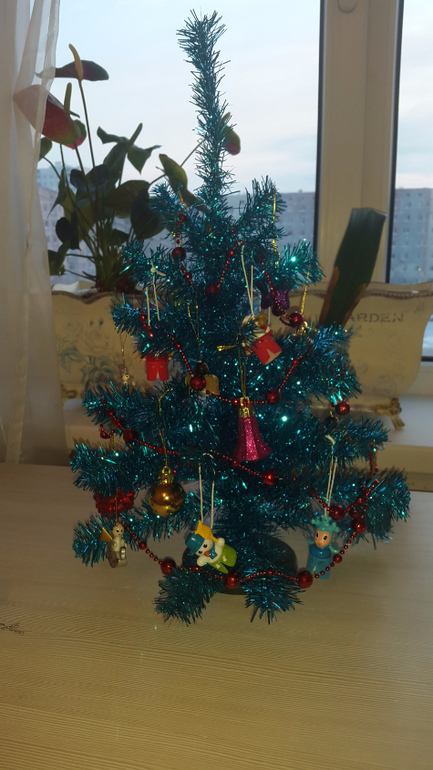 Эту елочку постоянно наряжает и разряжает и опять наряжает старшая дочка. и стоит она в ее комнате.