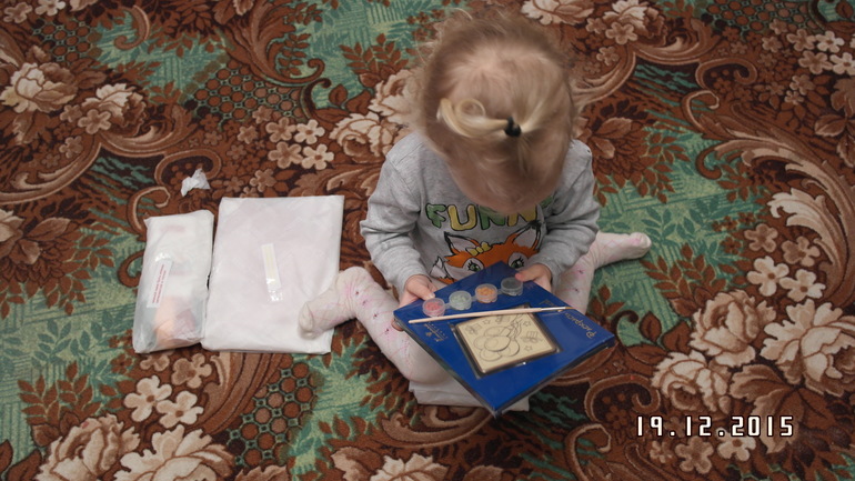 В ожидании чуда ( только что ела творожок сама!). Сразу приятно глазам, что подарки упакованы и весело подписаны, фото уже сделала после открытия.