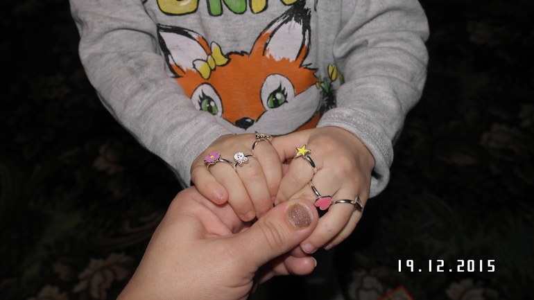 Дальше пошло нечто страшное))) Дали команду открывать и белая упаковка безжалостно разорвалась в клочья, вообще она была везде где только можно быть. И так , снегурочки не забыли ни кого в нашей семье, очень приятно. В первую очередь притащили кота, хотели сфоткать его с подарком, но от всего увиденного у кота случился шок, он перецарапал всех и быстро слинял под кровать и до сих пор не выходит. Дальше дети конечно, кольца нацепили везде, счастье то.