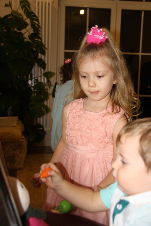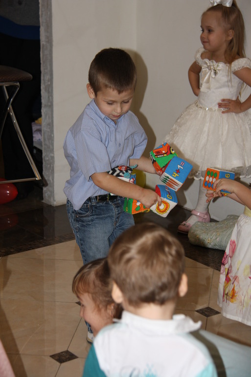 4. Имеет смысл организовать вручение подарков имениннику,чтобы детишки по очереди вручали подарки и сразу же разворачивать. Но тут ещё надо с именинником всё обсудить, Варя у меня не больно эмоции выражает, она потом уже всё неспеша рассматривает и играет. (Про подарки на 4 годика напишу отдельно).