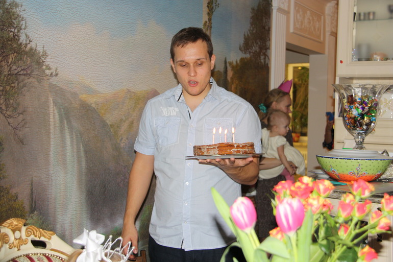 Потом перерыв на каравай, а затем торт со свечками и чаепитие.