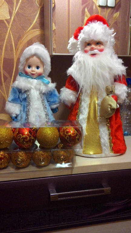 Новый ГодГотовимся к Новому году,вчера купили ёлочку 240см,вернее сосну,почти до потолка,но решили ставить числа 25 декабря. Пока в коробочке лежит и ждет своего часа. И еще очень милых Дед Мороза со Снегуркой приобрели. Поставим под ёлочку,будут глаз радовать.