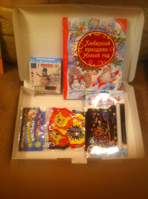 Для маленькой: любимые Маша и медведь, мягкий пластилин, хлопушка пистолет и конечно прекрасная новогодняя книга.