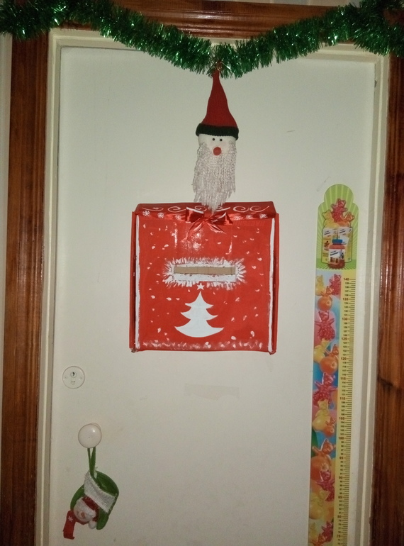 Дед Мороз сегодня положил в наш ящик постер ёлочки , мальчишки вместе украшали её наклейками - игрушками. Снежинки мы с Костей вырезали.