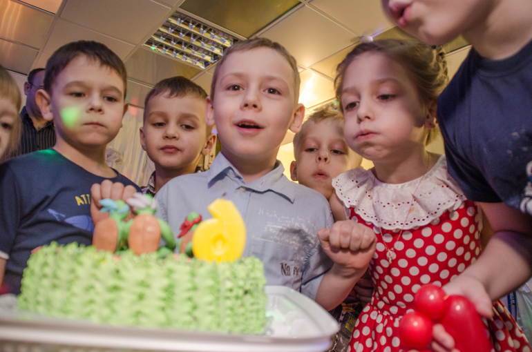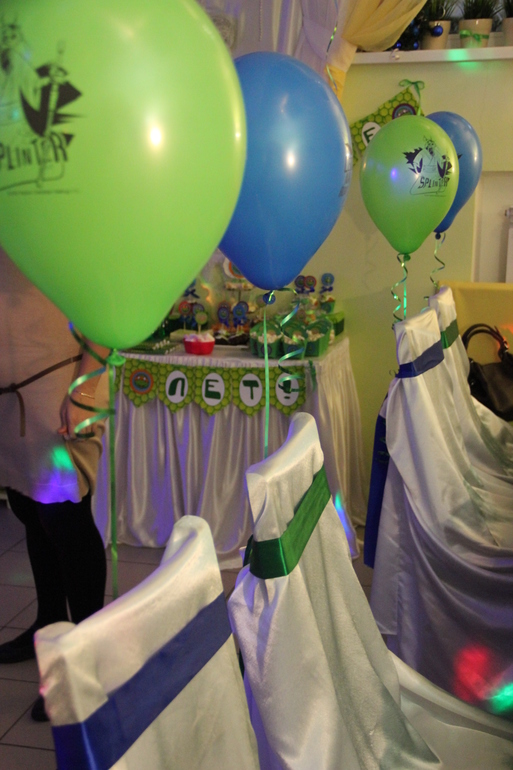 Отмечали мы в детском клубе. Я заранее закупила колпаки, салфетки, стаканчики и тарелочки:
