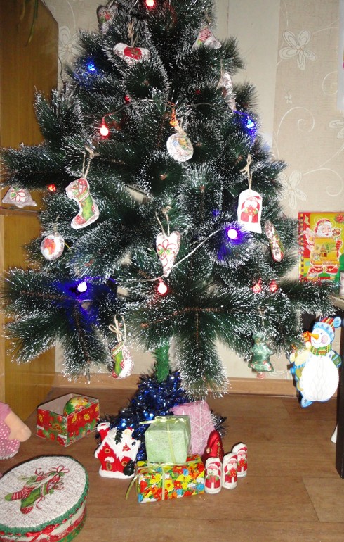 Игрушки на елку нам смастерила бабушка, она у нас творческий человек, любит делать разные штучки)))