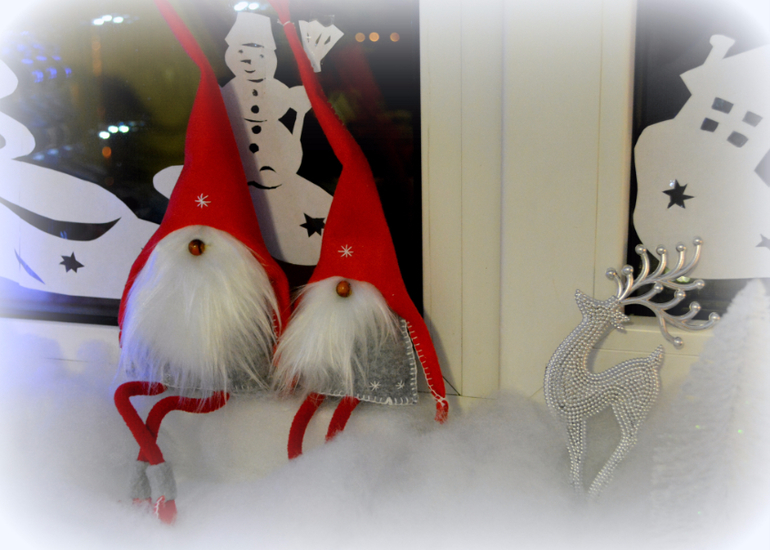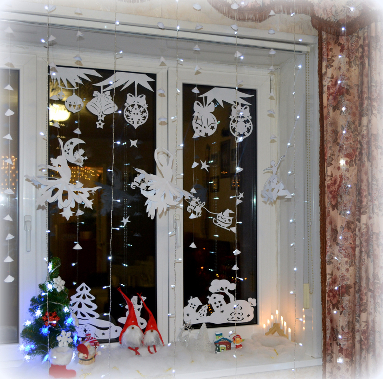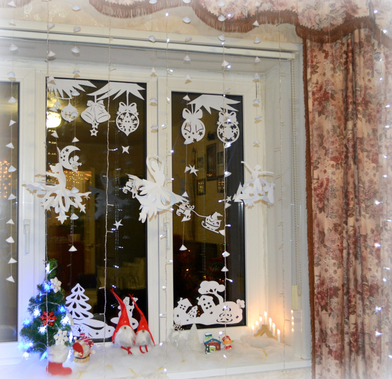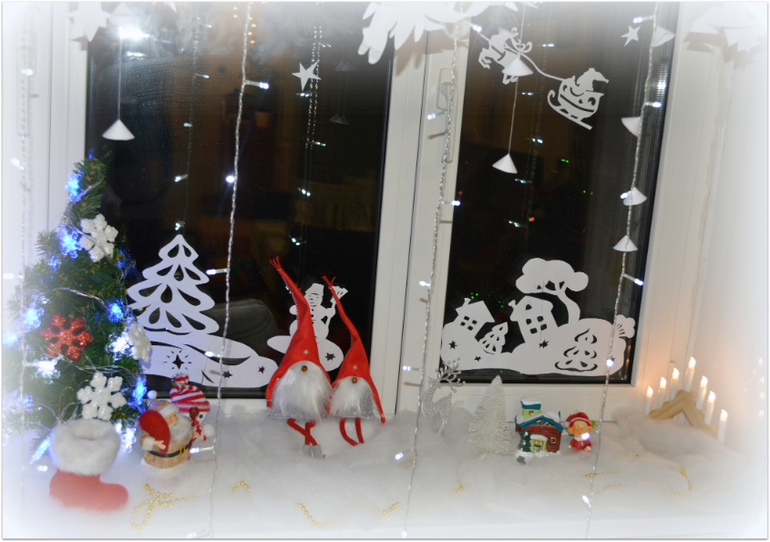 Самое большое мое творение, это окно. Далось оно мне долго и мучительно, есть то, что я не успела, но сил уже нет, оставим на следующий год. Гномов шила сама. Увидела в интернете и они мне так понравились.