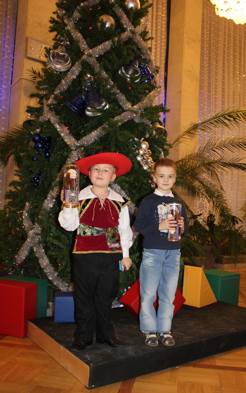Было не много обидно... Я должна была вести Славика и мою племянницу... Но.. не получилось.. и билет отдали другу Славика... Очень жаль, что они ушли из сада нашего. Славик скучает очень, а встречаться получается редко... На елке мальчишки наконец встретились и были такими счастливыми... Мне самой так жалко, что дети наши теперь в разных садах... Дружили столько времени. Сейчас в группе у Славика таких друзей нету... Группы объединили и мальчики хоть и прошло полгода, но как-то дружить между собой вот так не получается... это я отвлеклась.. Итак на елке...