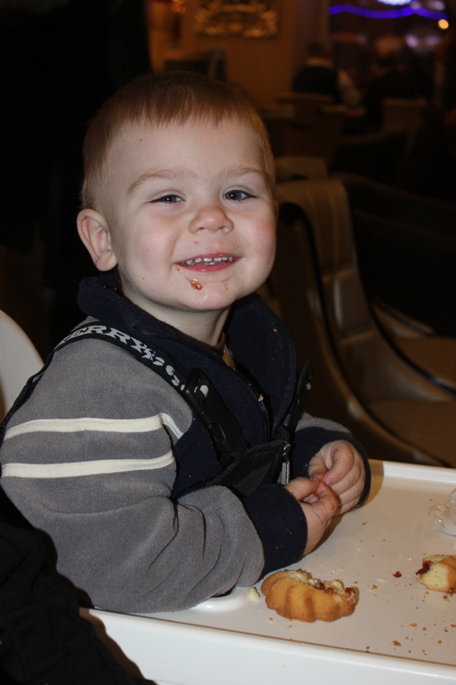 Потом с киндером, потом у елочки с бабушкой и оленем...