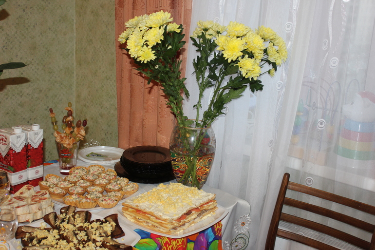 НО. Темик сделал нам сюрприз и проспал 2 часа. Мы пока все приготовили и накрыли на стол... А Темик проснулся как раз с приходом первых гостей...