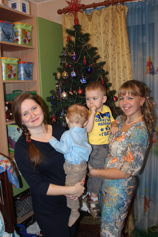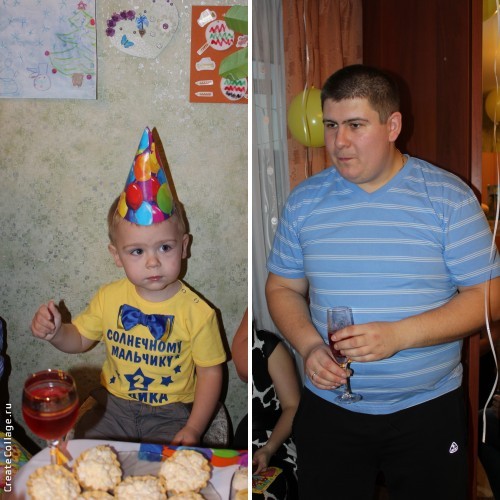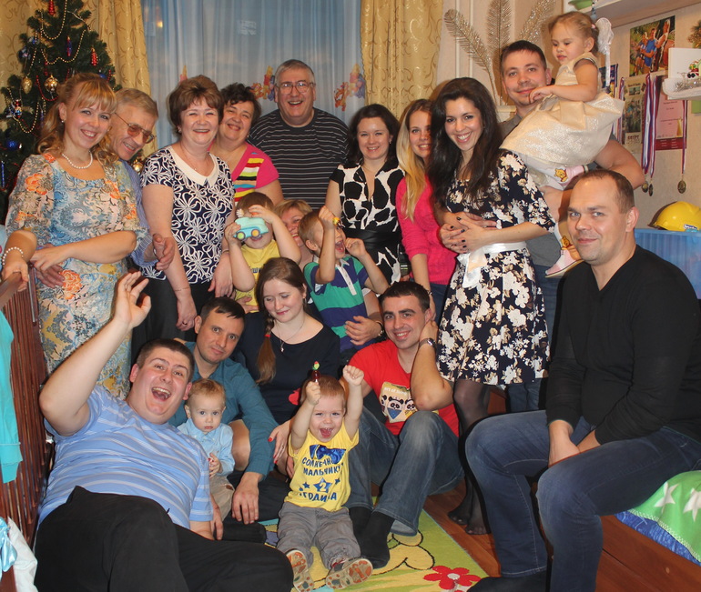 А дальше мы стали думать, как сфотографироваться всем вместе... Народу много.. В комнате где стоял праздничный стол не вариант, поэтому решили в комнату Славика.. а там елка, Темина кроватка... Уже второй год мы перетаскиваем елку на время празднования дня рождения в Славину комнату. Зрелище я скажу смешное... Когда два взрослых человека тащут елку на столе...