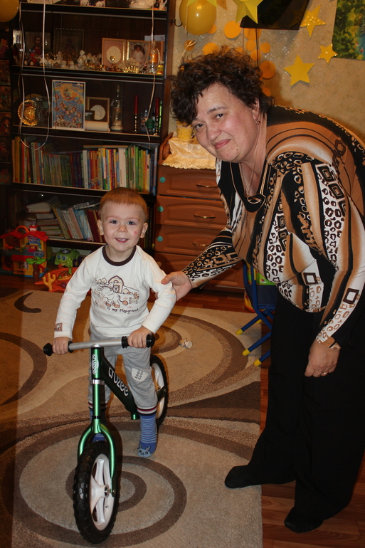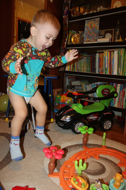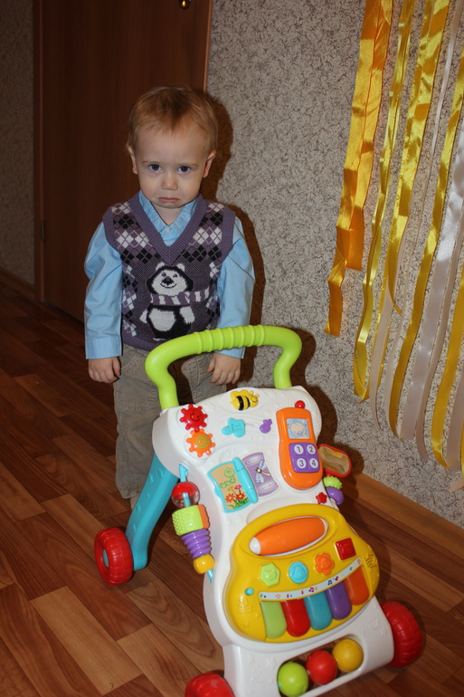 На беговел Темик сел сразу.. Но потом быстренько слез. и вечером пришлось нам со Славиком найти видео детишек катающихся на беговелах и показать Артемке... И что вы думаете.. он смотрел и хохотал и показывал на свой беговел. С тех пор мы ходим на нем, именно ходим.. Каждый день по многу раз... ножку закидывает и пошел.. пока не понимает что можно сесть и ножками перебирать. Думаю освоим этот момент и надеюсь летом будем гонять.