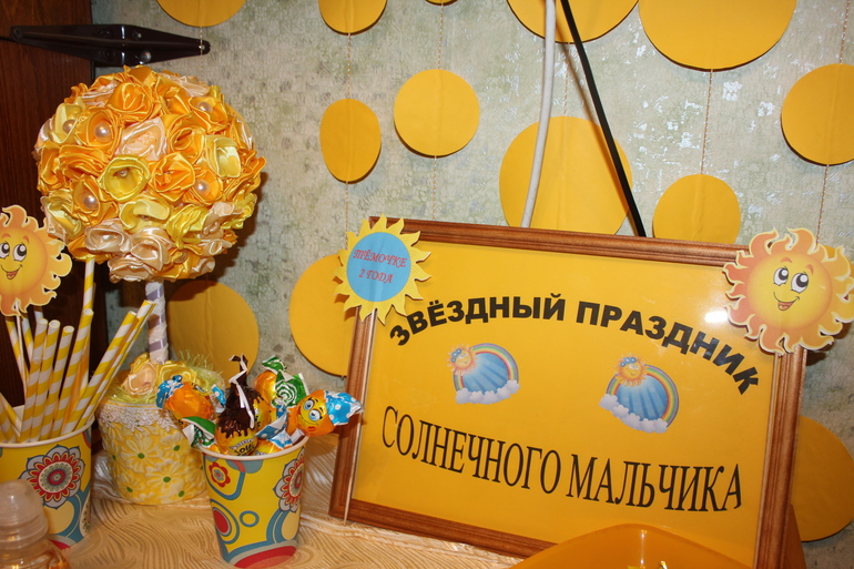 Придумать название нашего торжества, не составило никакого труда. Сомнений не было. Наш Темочка солнечный! Это наше Солнышко, такое любимое и такое лучистое! В нашей семье все называют его солнечным мальчиком! Смотришь на него и начинаешь улыбаться!