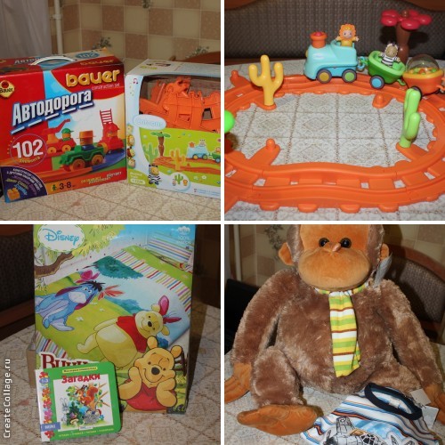 Обезьянка и железная дорога... Мы в последнее время обожаем мягкие игрушки, а поезда всегда были в почете...