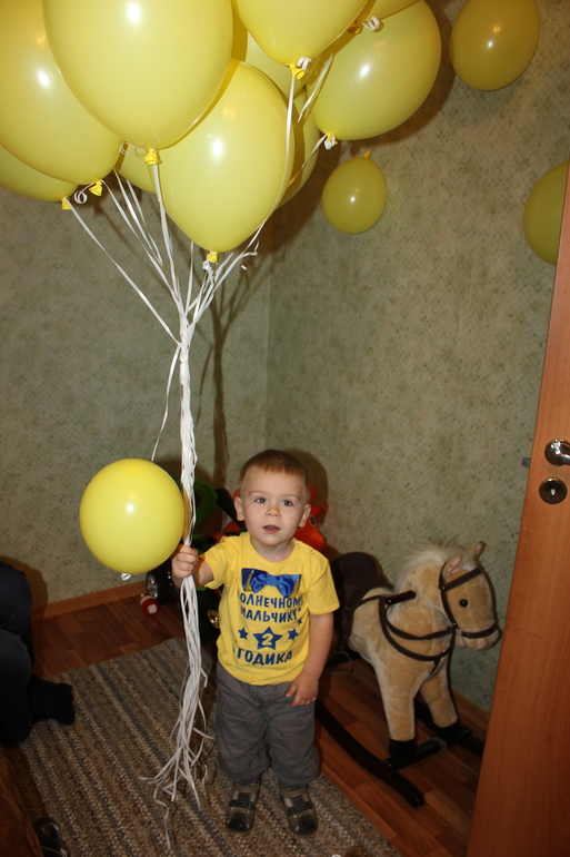 Как я уже писала Темик проснулся с приходом гостей.... Огромная радость была от шариков, но пока я судорожно искала фотоаппарат, мы стали немного серьезными...