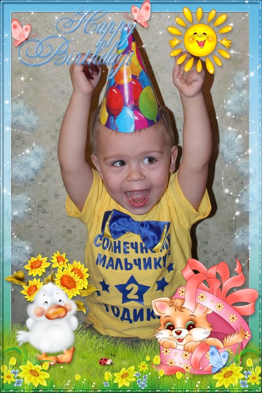 P.S. Последняя фотография в такой же рамочке, как и первая. Никак не могла выбрать... Вначале он такой озорной и солнечный мальчишка, а здесь серьезный и такой взрослый. Все-таки как никак 2 ГОДА! Это Вам уже не шутки!!!!!