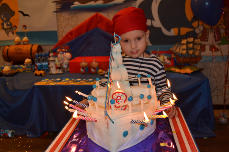 День рождения ДетскийК дню рождения сына я стала готовиться еще раньше чем к Новому году, было много идей но выбор сделал сам малыш, с большим удовольствием одев костюм пирата на Новый год.