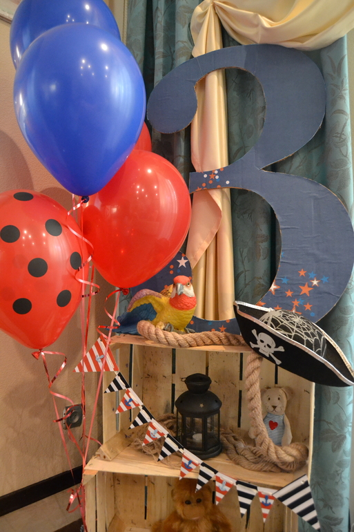 Отмечали дома, так как за 2 дня до праздника вернулись из отпуска, да и карантин во всех детских учреждениях заставил всех сидеть по домам. Весь декор готовила сама, скачивала с интернета,распечатывала, клеила, пилила, резала, искала ящички и канаты, тащила в дом всякий хлам и это все за 2 дня! ( только распечатала все заранее) ну и конечно ночами толком не спала, но к ДР сына все было готово, а он заболел. Немножко мы конечно расстроились, но квартира была украшена, торт готов, так что настроение было у нас праздничное. Провалялись с сыном весь день в постели ( как и три года назад в роддоме)